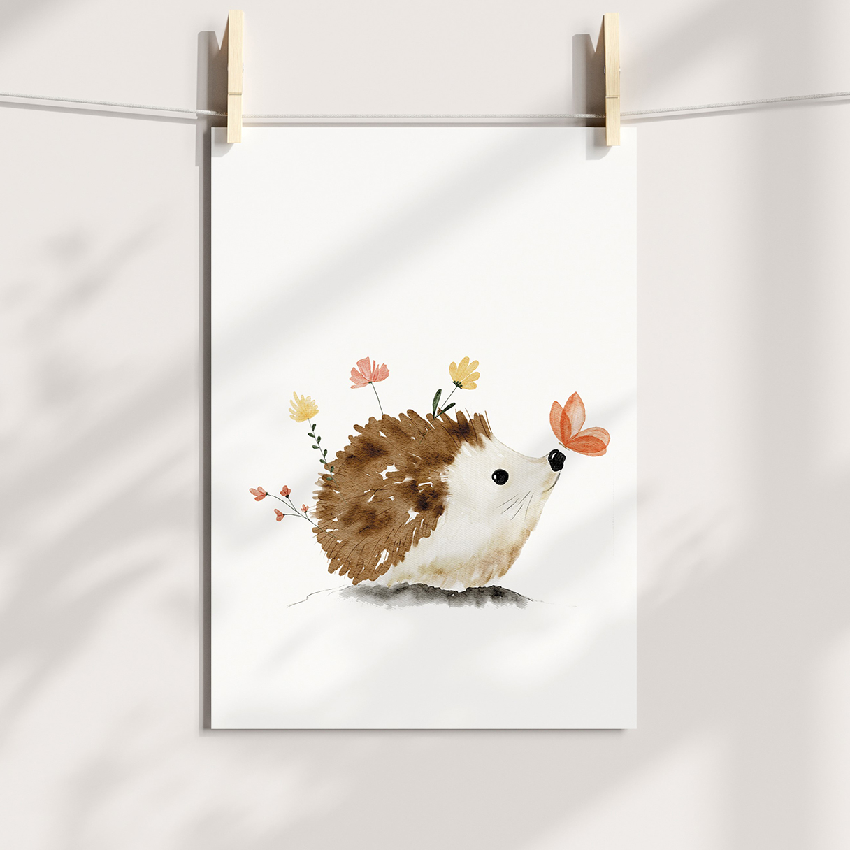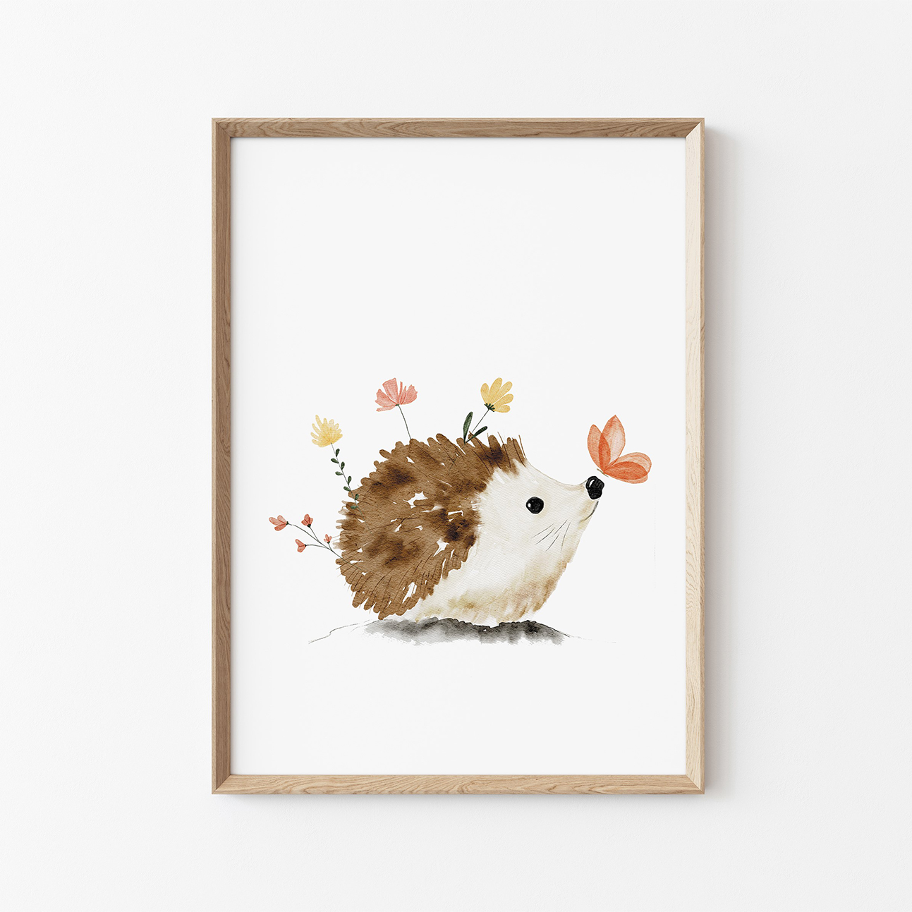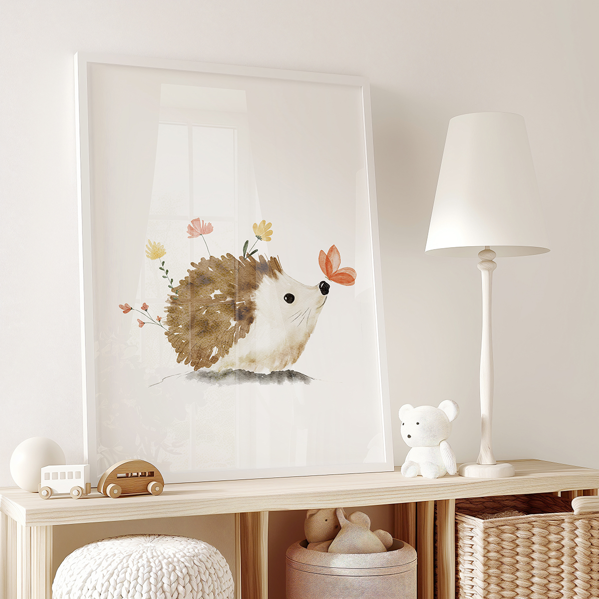 Wyobraź sobie ścianę pokoiku, na której rozgościł się uroczy, mały jeżyk 🦔. Jego figlarne oczka spoglądają ciekawie na świat, a wokół niego tańczą delikatne wiosenne kwiaty. Ten akwarelowy plakat przynosi do wnętrza spokój i harmonię, tworząc przytulną atmosferę idealną do snu i zabawy.